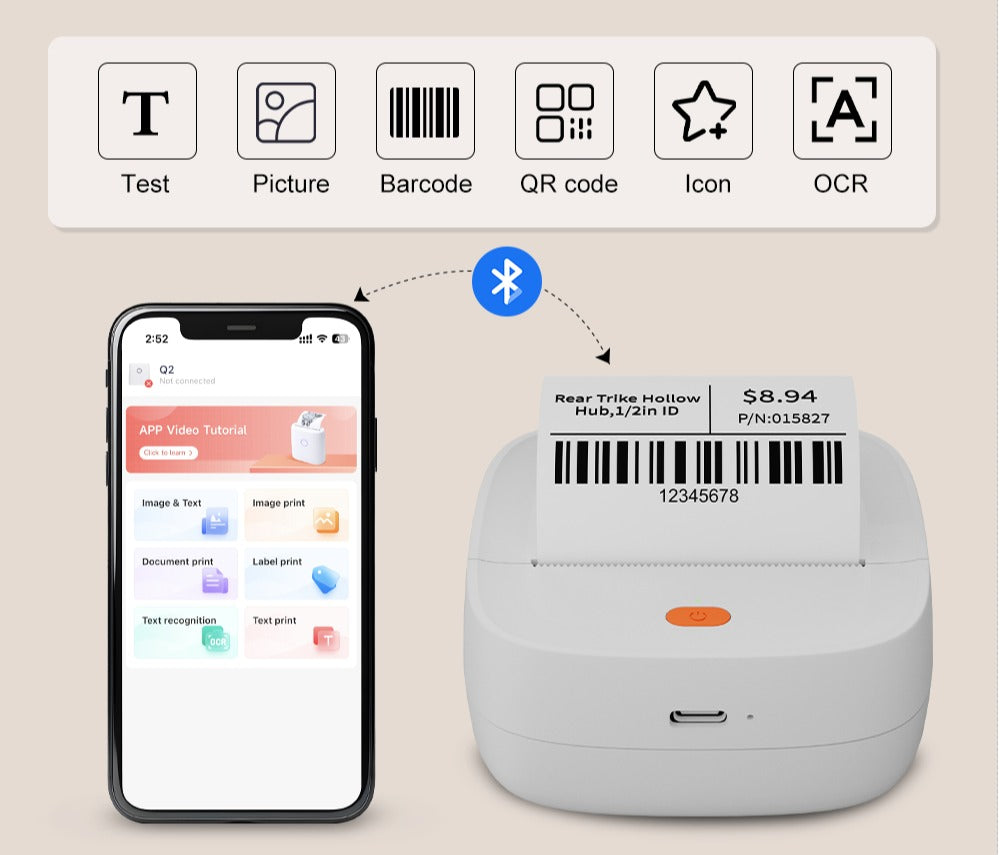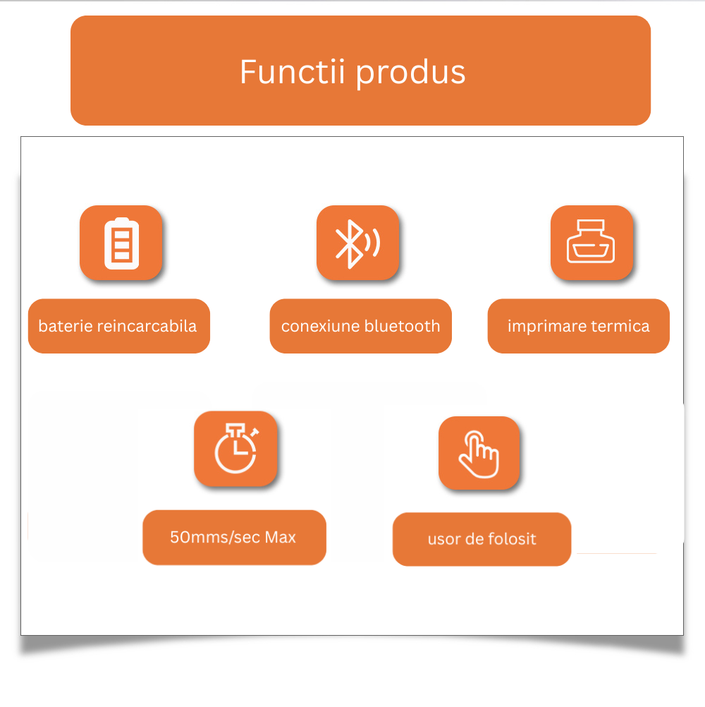Conectezi mini-imprimanta la aplicația dedicată prin Bluetooth și ești gata să printezi orice ai nevoie, direct din telefon. Creezi etichete, liste, iconițe sau coduri de bare în câteva secunde – totul dintr-un meniu intuitiv, ușor de folosit pe Android și iPhone.
