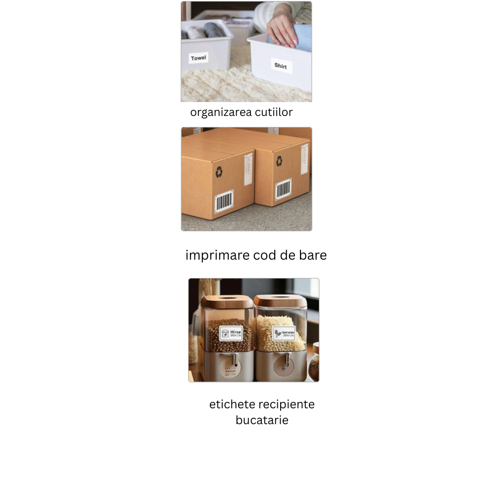 Funcționează cu hârtie normală și autoadezivă, perfectă pentru organizarea casei, biroului sau produselor din afaceri mici.